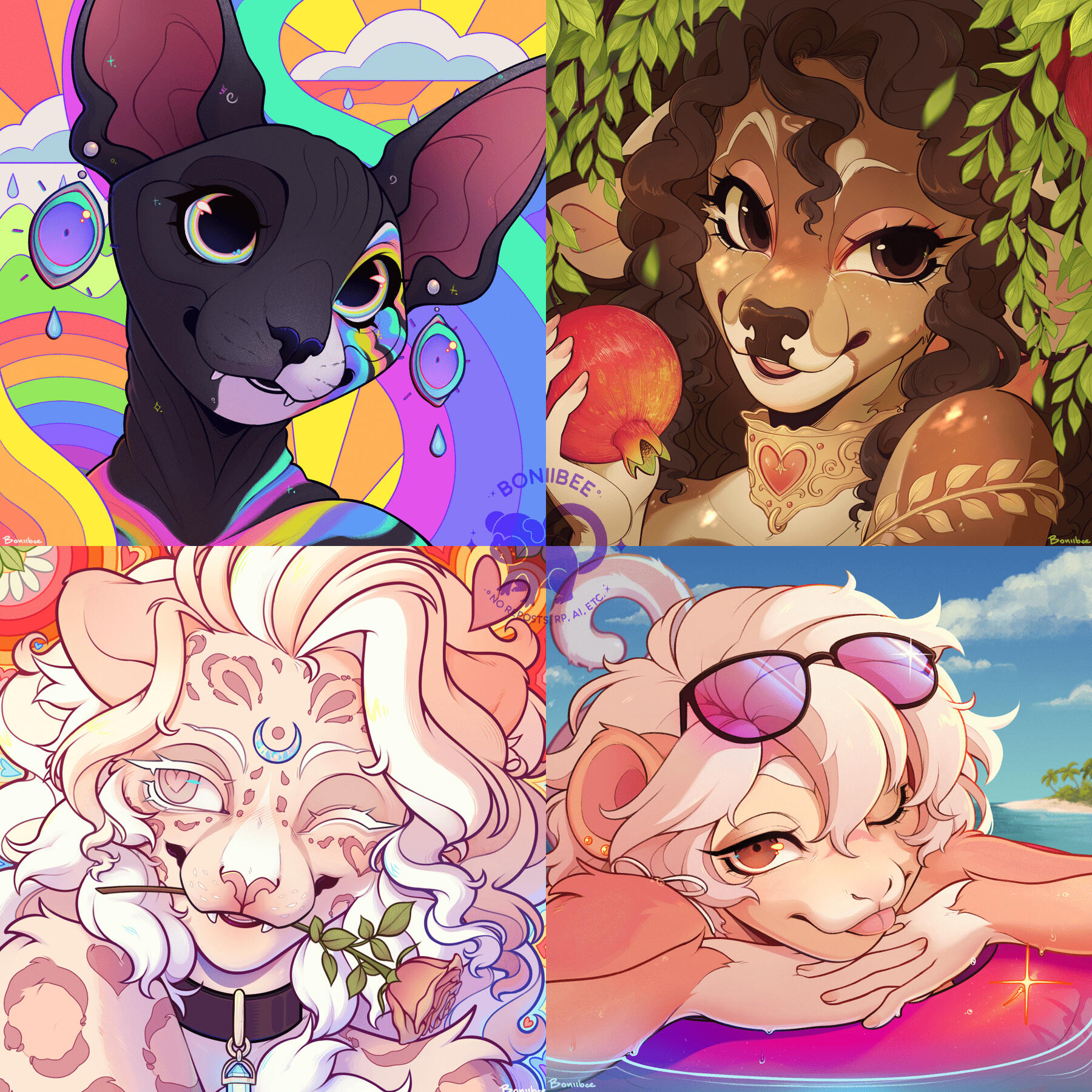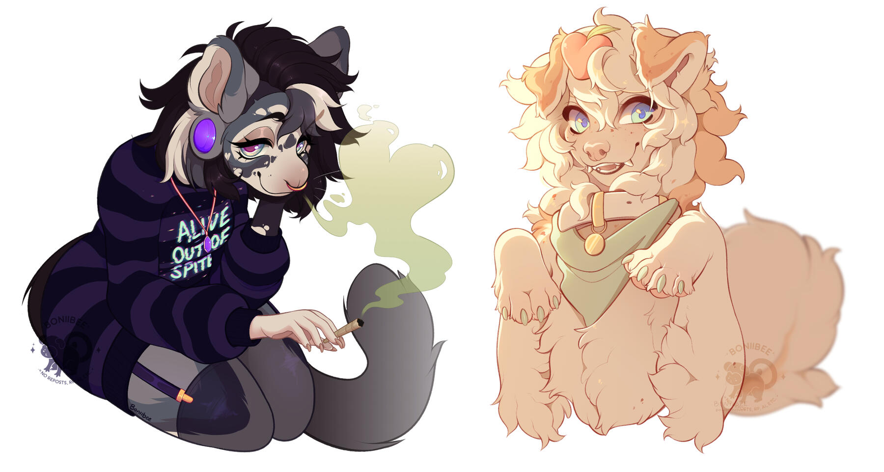 Examples are primarily to show finish. Commissioned fullbodies will have more dynamic posing and shading.